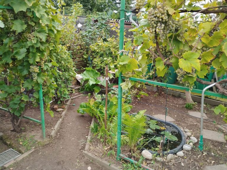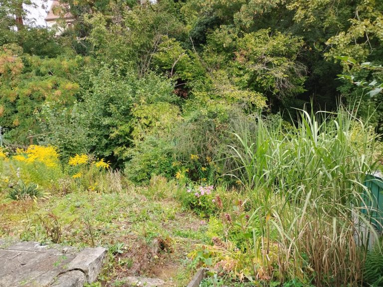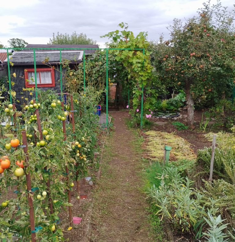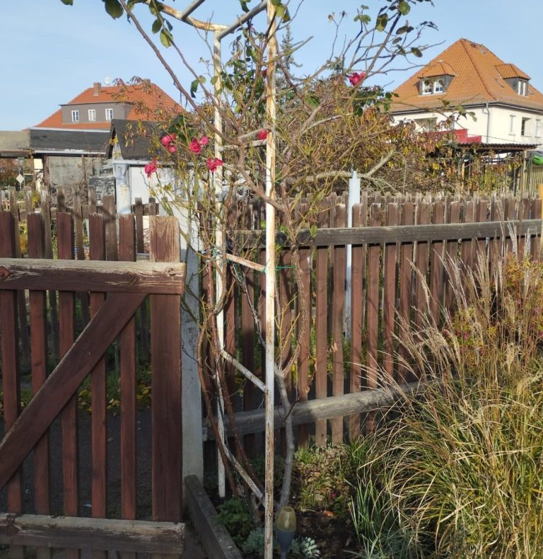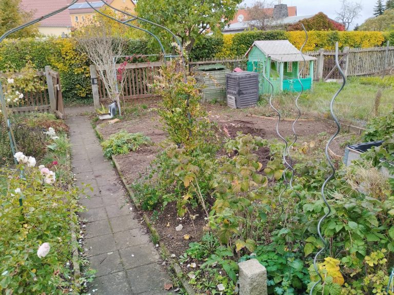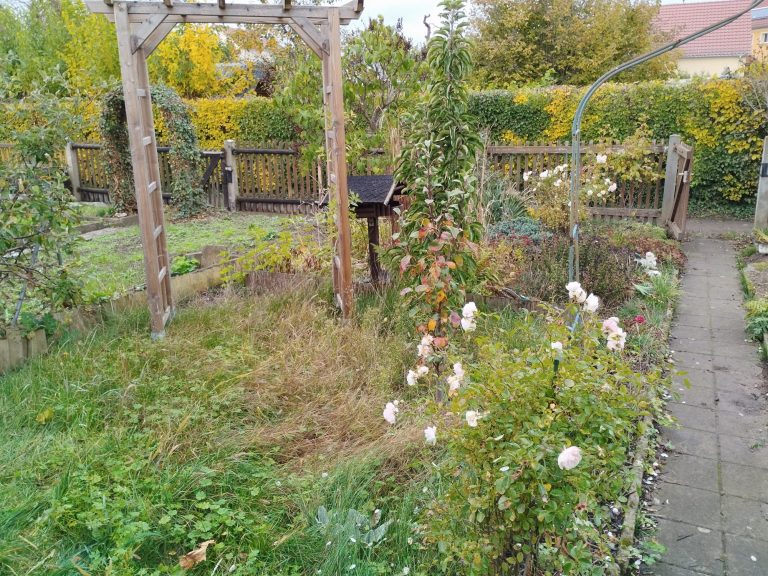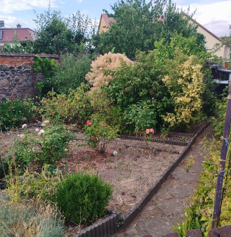 Apfelbaum, Wein, Rosen, Strauchbeeren, ca. 50qm Rasen und vieles mehr.