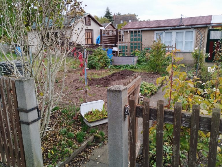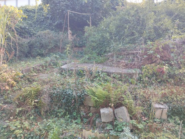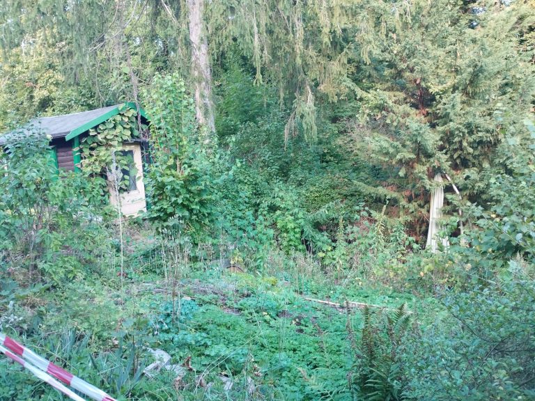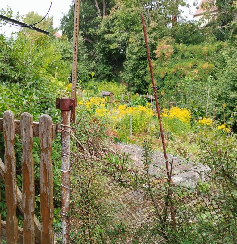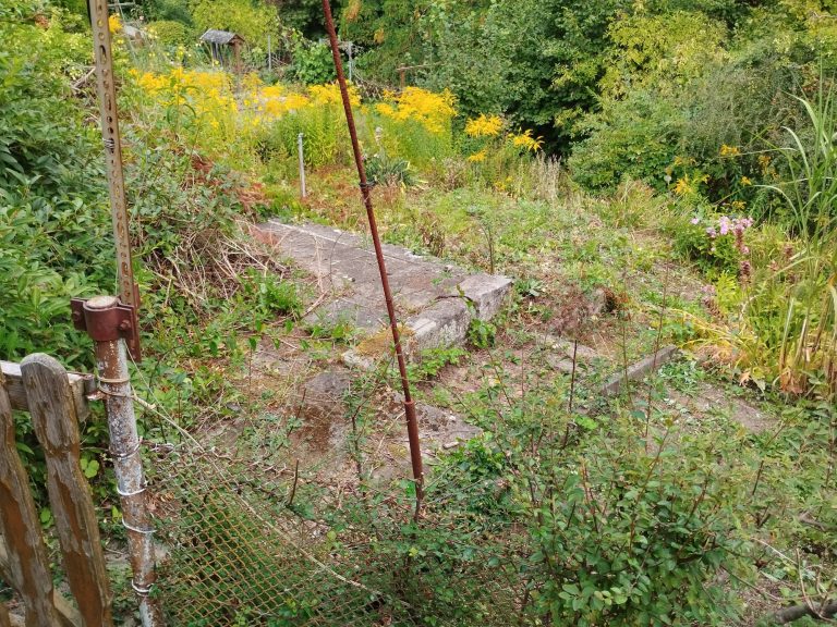 Eine Gartenlaube ist nicht mehr vorhanden, jedoch noch die Grundplatte zum Neubau.