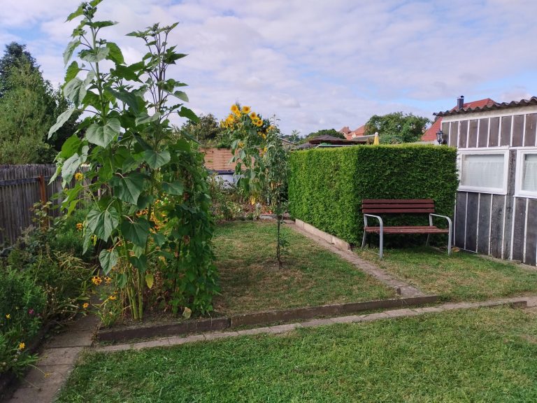 Der angebotene Garten ist im besten Zustand. Mit einer großen Gartenlaube aus Holz (ca. 16qm) Dazu ein kleines Toilettenhäuschen und ein überdachte Sitzecke.